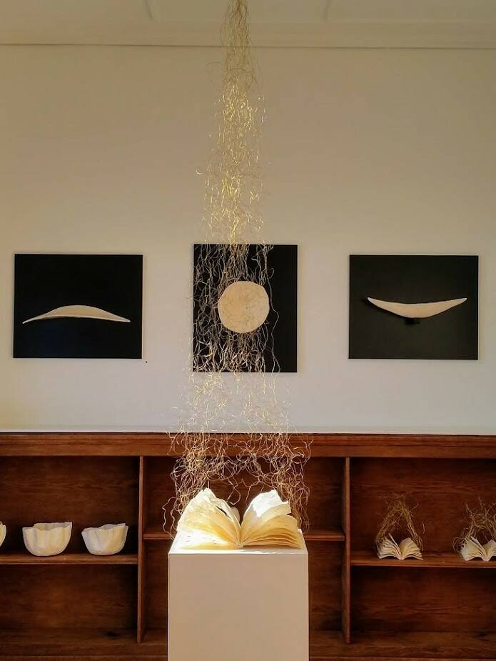 Papierkunst van een Japans kunstenaarsechtpaar uit Tokyo. Toshihiro Hattori ontwerpt met zelfgemaakt papier driedimensionale objecten en vormen. Yuko Ebina maakt kunstboekjes en aquarellen op papier met de traditionele Japanse schildertechniek. Van perkament maakt Barbara Bovenberg vrij werk geïnspireerd door haar vak als restaurator van boeken.
